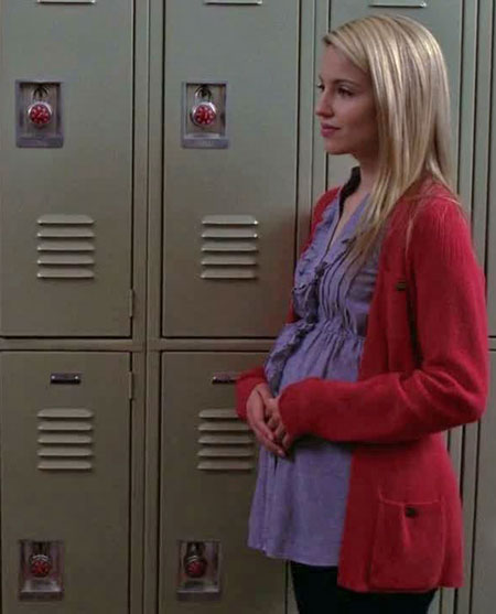 in here, Mr. Schue, the glee teacher, takes Quinn aside and tells her