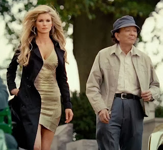 This isn't the only problem, sadly. A running gag in the film involves the RIPD officer's meatsuits, or the bodies that they appear as on Earth. Like I said above, Nick appears as an elderly East Asian man, played to perfection by James Hong, and for the most part, that bit works. It's funny because you see an old man getting hit by a car and then jumping up brandishing a banana (instead of a gun).