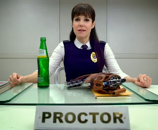 Because Nick is a dirty cop, he doesn't go off to face judgment when he dies, instead being pulled out of the heavenly tunnel and plunked down in the Rest In Piece Department. The Proctor (Mary Louise Parker) gives it to him straight. Either Nick joins on with the RIPD and helps them catch deados for the next hundred years or so, or she sends him back to meet his fate, and she's pretty sure it isn't a nice one. Nick takes the deal.