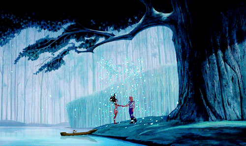 I understood why Pocahontas would be drawn to him though. Not so much him but the situation of him. She believed in signs from the universe and then along comes this foreigner (who came from just around the river bend beyond the shore, just like she was singing prior to meeting him) that she can converse with despite speaking different languages and she felt like it was a fate encounter.