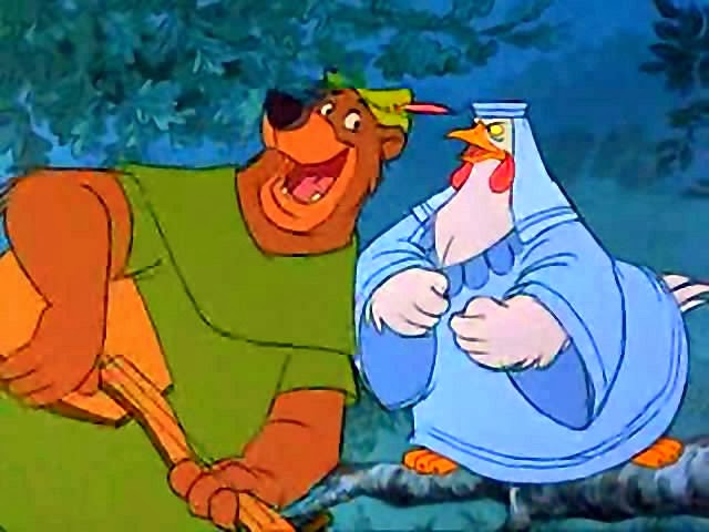 And just before we go, I want to give a quick shout out to Clucky, Maid Marion's friend. Clucky is possibly my favorite character in the movie precisely because she's the opposite of Maid Marion. She's bawdy, violent, snarky, and vehemently political, and not only are she and Maid Marion friends (which is awesome in and of itself), but Clucky is shown to not just be Maid Marion's tag along, but to be a desirable woman-ish creature in her own right.