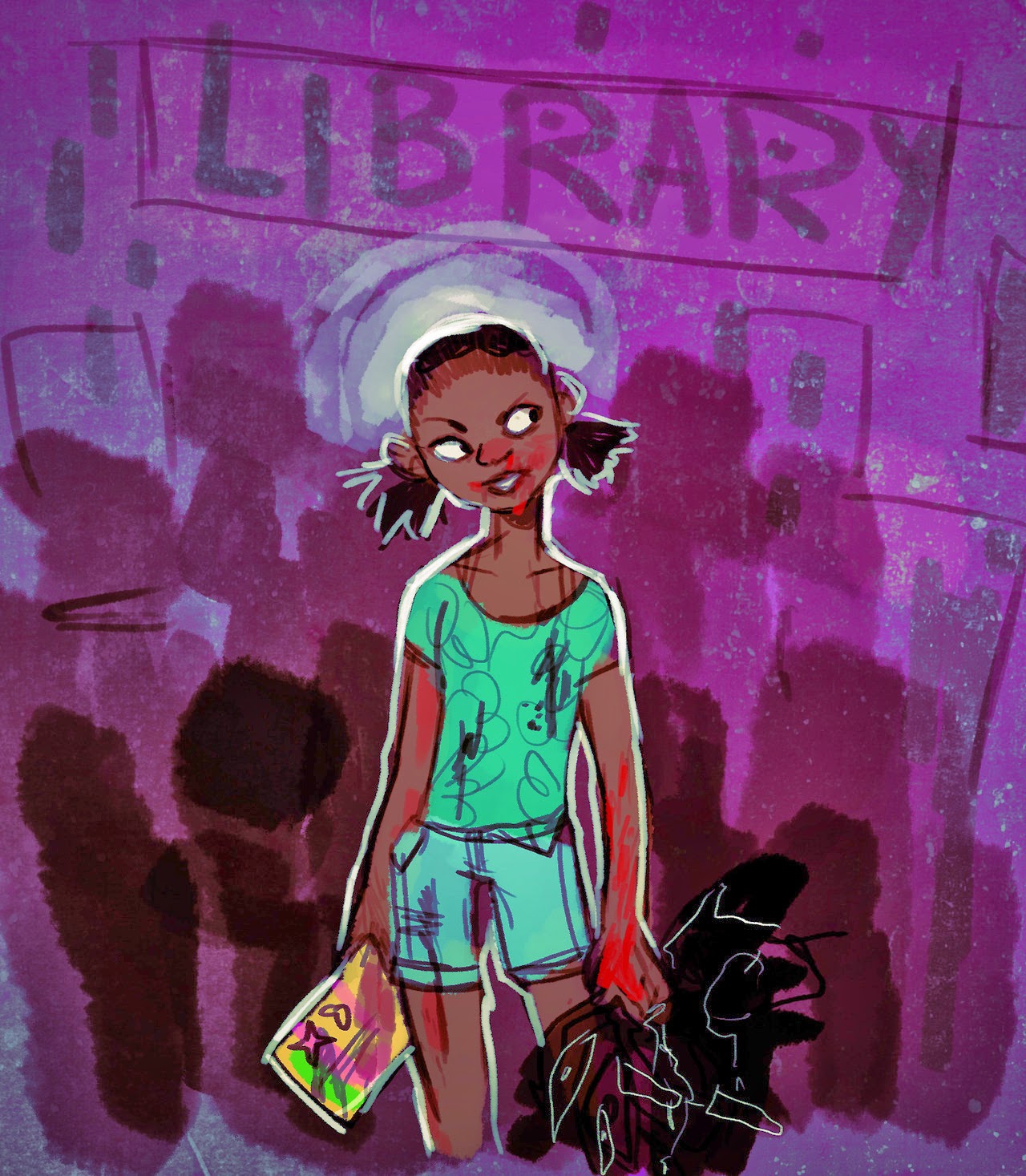 I don't have enough time to run through all the female characters, because there are actually that many of them, but I want to pull out a few to examine, because I feel that it's important to show how much these aren't your usual stereotypes. For example, probably the most popular female character on the show is Tamika Flynn, a twelve year old girl who first shows up in the "Summer Reading Program" episode. Tamika Flynn is one of the children who cautiously walked into the dreaded Night Vale Library, and came out victorious from her battle with the Librarians, covered in gore, with a reading list far in advance of her grade level, and clutching the severed head of a vanquished Librarian.