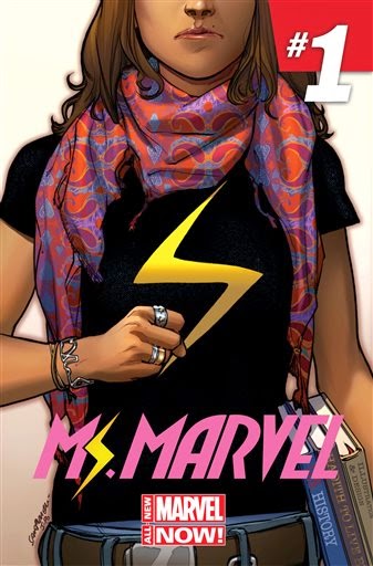 Ms. Marvel is a new title, just a few issues in, where instead of Carol Danvers in the thigh-high boots, it's newcomer Kamala Khan, a second generation American rebelling against her parents and their strict rules, but not entirely sure where she fits into her high school, and whether or not she really wants to. It has some really interesting stuff about race and religion and what it means to be a real and visible outsider in high school, which is fascinating, since Kamala's power is shape-shifting - she can look like anyone she wants, and a lot of the time, that means looking like a hot blonde superhero. Because she wants to be one of the cool kids, and the cool kids are white and blonde, right?
