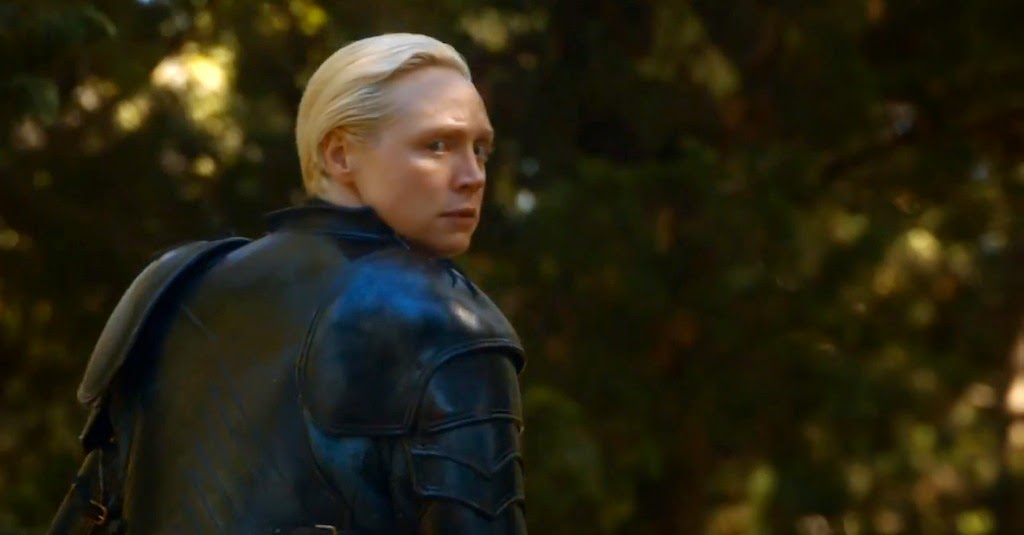 Brienne is back and she's chilling out with Jaime in the war room, reading the official historical record of his actions in combat. Tragically, it doesn't mention that he's a rapist. Jaime continues his, "Aren't I such a nice guy?" campaign by giving Brienne his Valyrian steel sword (the one made out of Ned Stark's sword) and asks her use it to protect Sansa. Probably from him. Oh, and he gives her some custom made armor. Because he's such a nice guy, am I right?