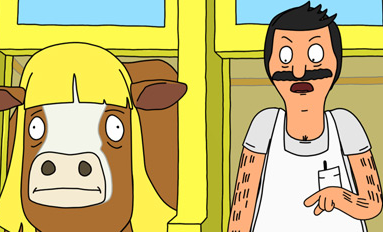 Is that masculine? I mean, on the one hand, he is a man, who has a mustache and a lot of body hair and runs a diner. He likes sports (sort of) and watches old Westerns and has a running grudge match against Jimmy Pesto, who runs the Italian place across the street. On the other hand, Bob once got so emotionally attached to a cow (technically a steer) in a wig that he moved it into the apartment so it wouldn't be cold.