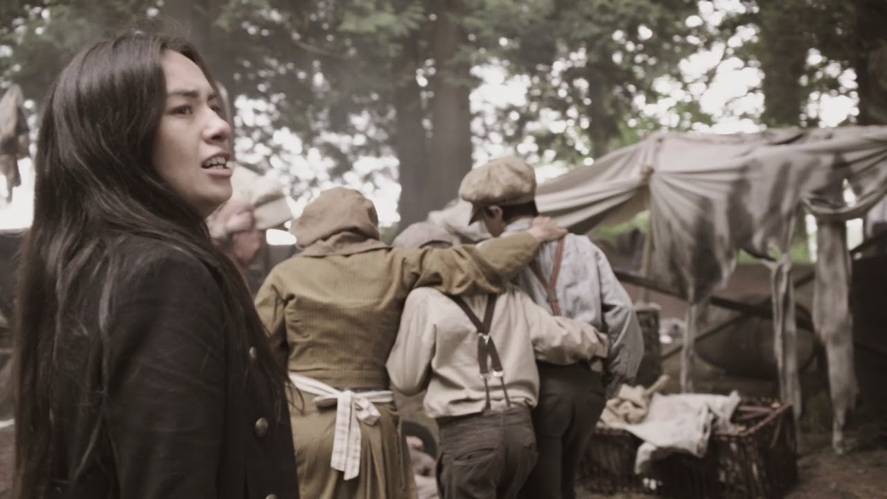 The show starts in media res, as it were, with horses galloping through the woods and out into the fields. The horses are ridden by Kat (Cara Gee) and Jeremiah (Richard de Klerk) and they’re going to the Station House, a wayhouse for wagon trains and stagecoaches on the Montana/Canada border. They’re rushing, going as fast as humanly and horsely possible, because their baby is sick. Probably dying. But there’s supposed to be a doctor at the Station House.