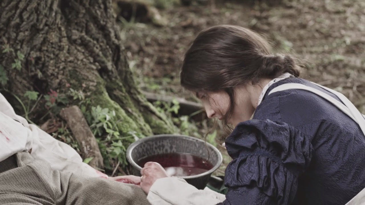 Rebecca’s found a rain barrel or trough or something in the stable and is cooling off as Thomas comes in to confront her about her drawings. She has a medical illustration of a baby but it’s the wrong way in the womb. Rebecca tries to explain that it’s a breach birth, and she’s pretty sure she could actually get it out by operating on the mother. A Caesarian Section. But those haven’t been made standard yet, and certainly not by a woman, so Thomas is super skeptical.