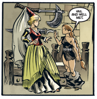 The real challenge of the school, though, comes not from the classes but from the other students themselves. And this is where the story could fall into shaky territory. After all, we've established that Ulga is tough and awesome and a fearsome warrior. The other girls are all basically stereotypical princesses, and catty ones at that. They like their fine dresses and delicate dancing lessons and they find Ulga's muscles and illiteracy horrifying and ridiculous.