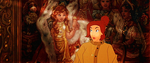 So. For those of you who didn't grow up in the 90s, this is what the movie is about. Anastasia is a heavily fictionalized version of the story of the "missing" Romanov princess, Anastasia. According to the urban legend, when the Bolsheviks had the entire royal family executed in 1918, Anastasia escaped and somehow was still living at large, waiting to reclaim her title. This is, of course, provably not true.*