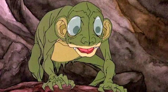 The goblins are a bit different than I remember Tolkien describing them, but that's less of a thing, because Tolkien isn't super clear on the bad guys. He tends to leave a lot to the imagination. Hence, Gollum in this adaptation very well might be what he was thinking of. In this version, I feel the need to point out, Gollum isn't a thing much like a Hobbit, he's a sort of amphibious blind salamander fish dude. It's a really fascinating character design, but, again, terrifying.