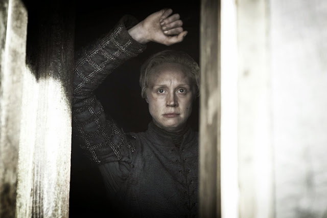 Fortunately, and thank goodness there's a plus side or else this would be unbearably bleak, Brienne is still around. And by around, I mean that she's one keep over, keeping watch on Sansa like a really angry fairy godmother. Brienne gets the word out to the loyal servants that she's there to protect Sansa, should she need it, and that she's not loyal to anyone else. The North remembers, and the North passes word along. If Sansa is ever in danger, she is to light a candle in the top window of the broken tower. You may also remember that as the place where Bran nearly fell to his death.