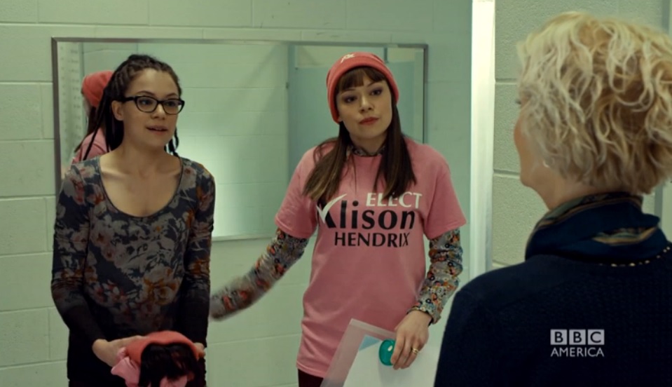This episode made me extremely happy because it's validated my ongoing theory that this season of Orphan Black is, more than any other, about family and how that family can expand beyond what you ever imagined. I know that this is the theme now because Alison literally said that in a speech. It was very gratifying.