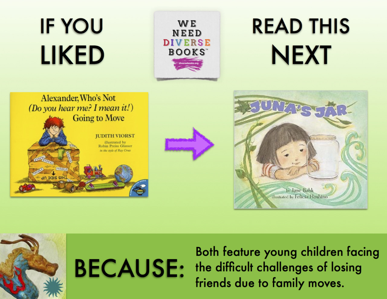 The other great thing about this reading series honestly comes down to how simple it is. While a lot of people want to read more diverse books with their kids, it's hard to know what you're getting when you pick up a children's book you've never heard of before. I've had some ridiculous experiences with that, going from the sublime (Manana, Iguana is amazing) to the terrifyingly fundamentalist (The Berenstain Bears and the Piggy Bank was alarming even for that series).