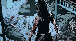 In the very first issue as well, the story presents us with a horrible situation where Forever is attacked by "waste" who break into one of her Family's homes for no reason other than to eat the food that is stored there. The home is empty, the food will go uneaten, and these people are starving to death. Yet Forever is commanded to kill them for their crimes.