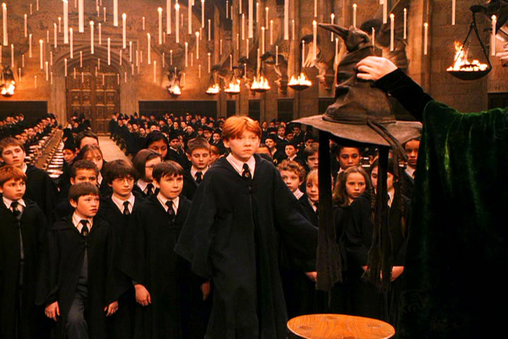 Remember the scene? Harry's a little baby lamb of eleven, just come to Hogwarts for the first time, and McGonagall puts the Hat on his head: