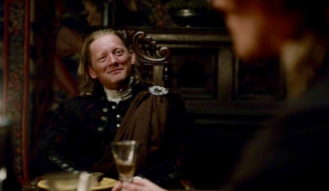 This is a problem for a couple of reasons. First, it's a problem because Horrocks knows who Jamie really is and that there's a price on his head. But also second, because Horrocks is pretty awful at keeping his mouth shut and has no actual incentive to do so. Naturally this ends with Horrocks blackmailing Jamie.