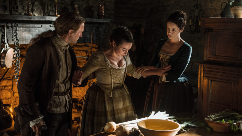 While all of this is happening, Claire has her own crisis to deal with. It seems that Jenny's baby has decided it's time to make an appearance. Which would be good, if it weren't for the fact that Claire has no experience delivering babies. Even worse, the midwife is out of town and the baby is coming out breach. Which, if you don't know, means that the baby is basically backwards, trying to come feet first. This is bad because it means the child might get caught at the shoulders, which could cause a tear, and could kill both mother and child.