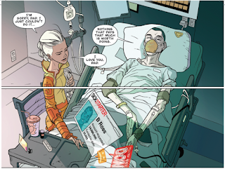 But to say that this is just a wish-fulfillment story about what would happen if we let a "normal person" be president for once is reductive and doesn't grasp the full scope of what this comic can do. As we go through, we find that Beth is a pretty canny political operator and that she might just be the best President in a long time. She does such crazy things as shut down America's drone program or go on a worldwide apology tour. She stacks her cabinet with people she knows and trusts and believes will do the right thing. She even figures out how to blackmail the big pharmaceutical companies into doing what she wants.