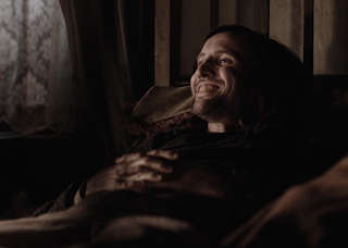 As luck would have it, however, just when Isabelle realizes how thoroughly John has screwed her and that she doesn't want him to die this instant, actually, because she doesn't have a husband lined up, Chekov's bottle of poison comes into play: Adaline, the whore that John likes and who has been being crapped on in every storyline for about two episodes now**, happens to take a playful swig from the bottle during sex and then wind up immediately dead. John is not confused as to what has happened. Nor is he that broken up about it either. I mean, he did write out his will yesterday. He knows he's about to die, and it seems he's quite okay with that.