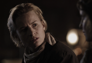 Kat is all fired up and ready to kill John, even as Rebecca points out how alike the three of them really are. All bound together by their relationship to death. It's gross, but pretty on point. Kat even takes some time to say goodbye to the massacred dead, striking a mercy blow on one woman and her child and possibly making peace with her past. But with Kat it's hard to tell the difference between making peace and swearing more revenge.